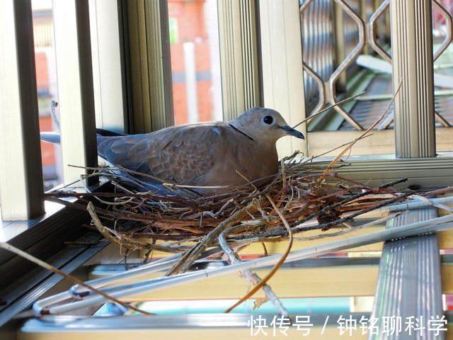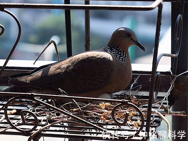 不仅如此,斑鸠似乎还不怕人,经常被人们发现在自家阳台上筑巢,甚至有人担心它们的巢穴太过于简陋,孵化期间会不会鸟巢坍塌。
